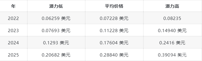 根据该公司的 TRX 价格预测,到 2022 年底,山寨币可能飙升至最高0.0827 美元。而趋势逆转可能会将价格降至0.0727 美元。买卖压力的平衡可以将价格定在0.0782 美元。Digital Coin Price 的分析师将 2025 年的最高收盘目标定为0.26 美元。